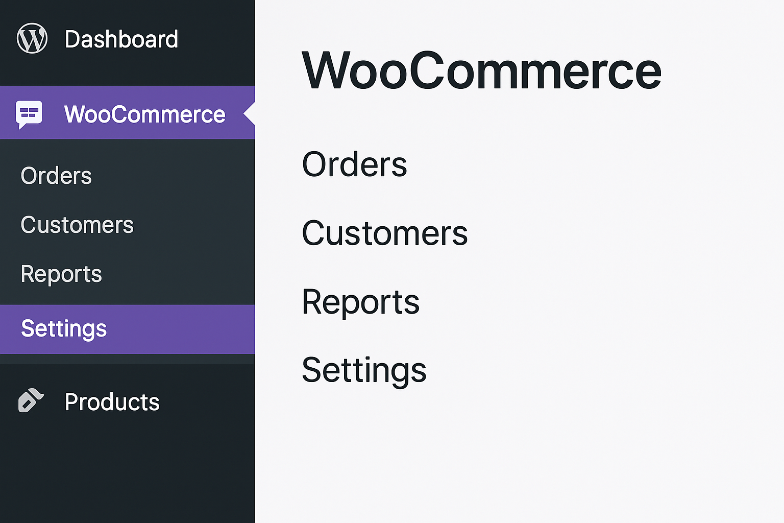 Acesse as configurações do WooCommerce No menu lateral, expanda o menu WooCommerce e clique em Configurações.