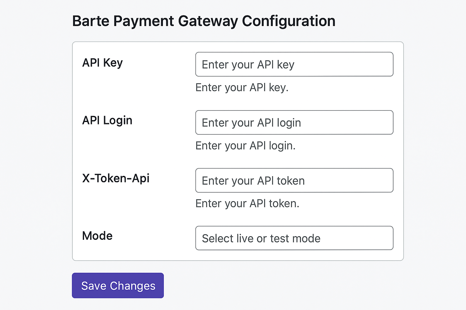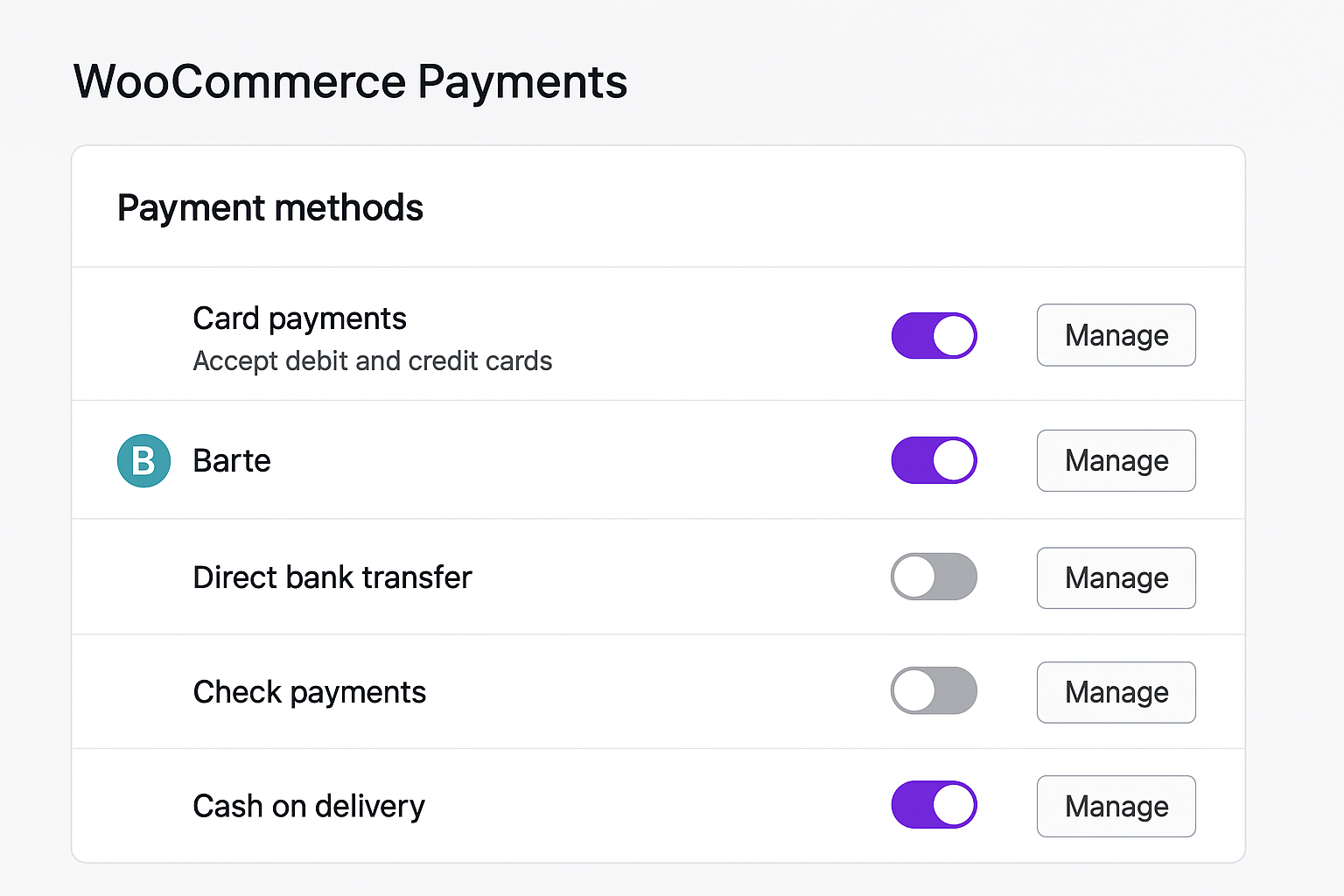 Integre sua loja WooCommerce com o gateway de pagamento Barte e aceite pagamentos por cartão de crédito, PIX e boleto bancário de forma simples e segura.