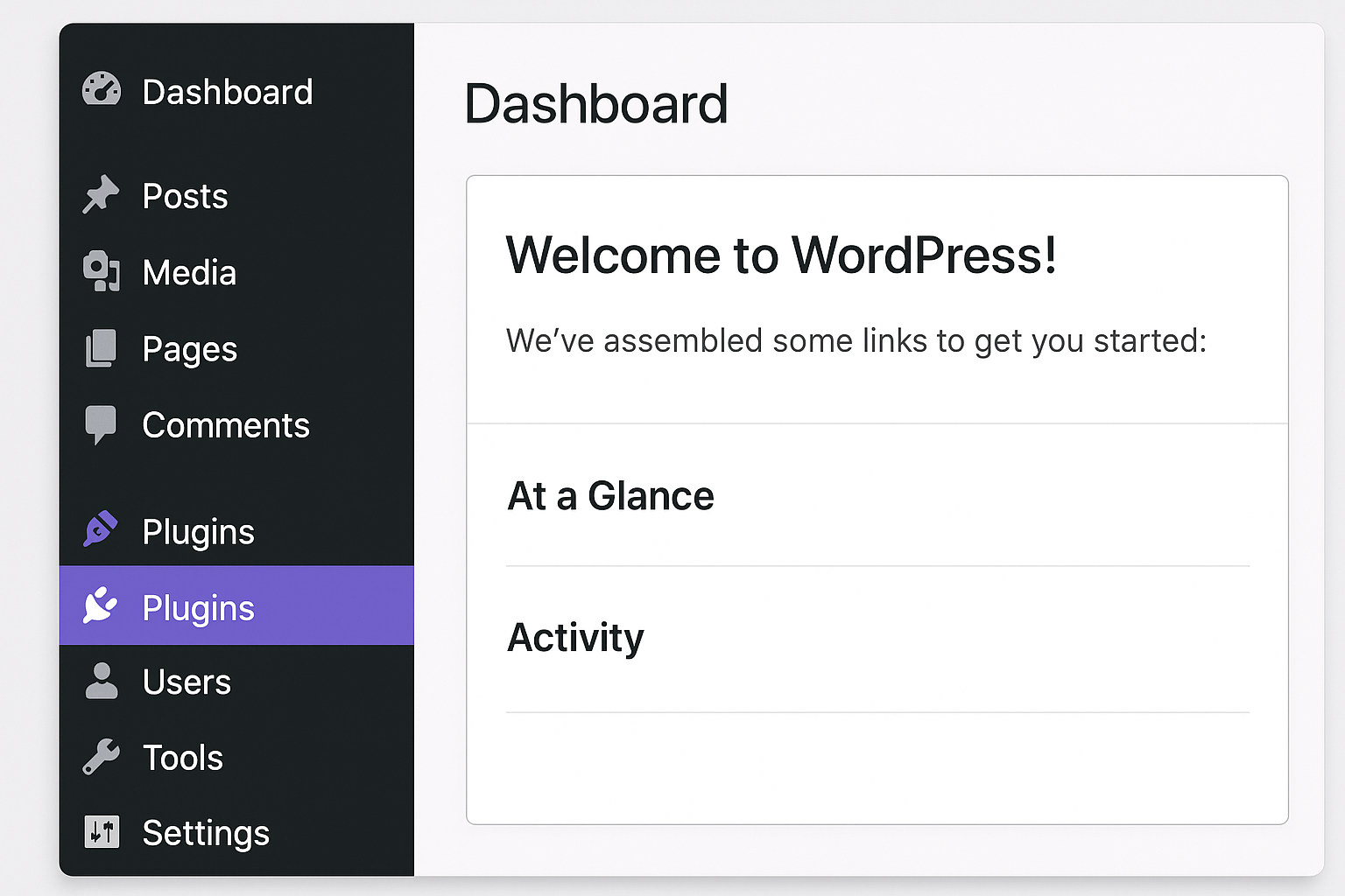 Acesse o menu Plugins No painel administrativo do WordPress, clique em Plugins no menu lateral esquerdo.