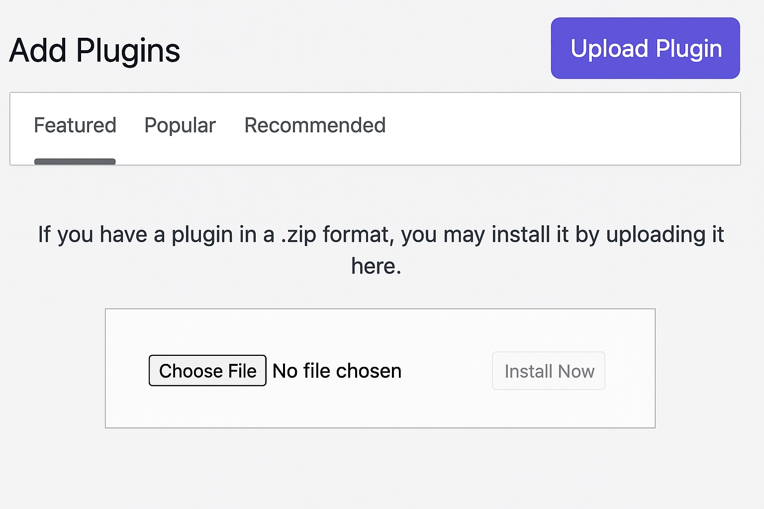 Clique em "Enviar Plugin" No topo da página, clique no botão Enviar plugin para fazer upload do arquivo ZIP.